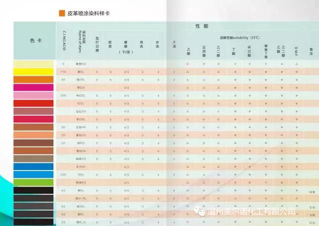 溫州美爾諾化工有限公司是一家致力于尖端染料的生產企業,經過數十年的發展,溫州美爾諾化工有限公司已成為高檔水性環保染料、皮革噴涂染料、耐遷移染料、耐高溫染料及染料中間體等精細化學品的研發、生產、銷售的專業企業。